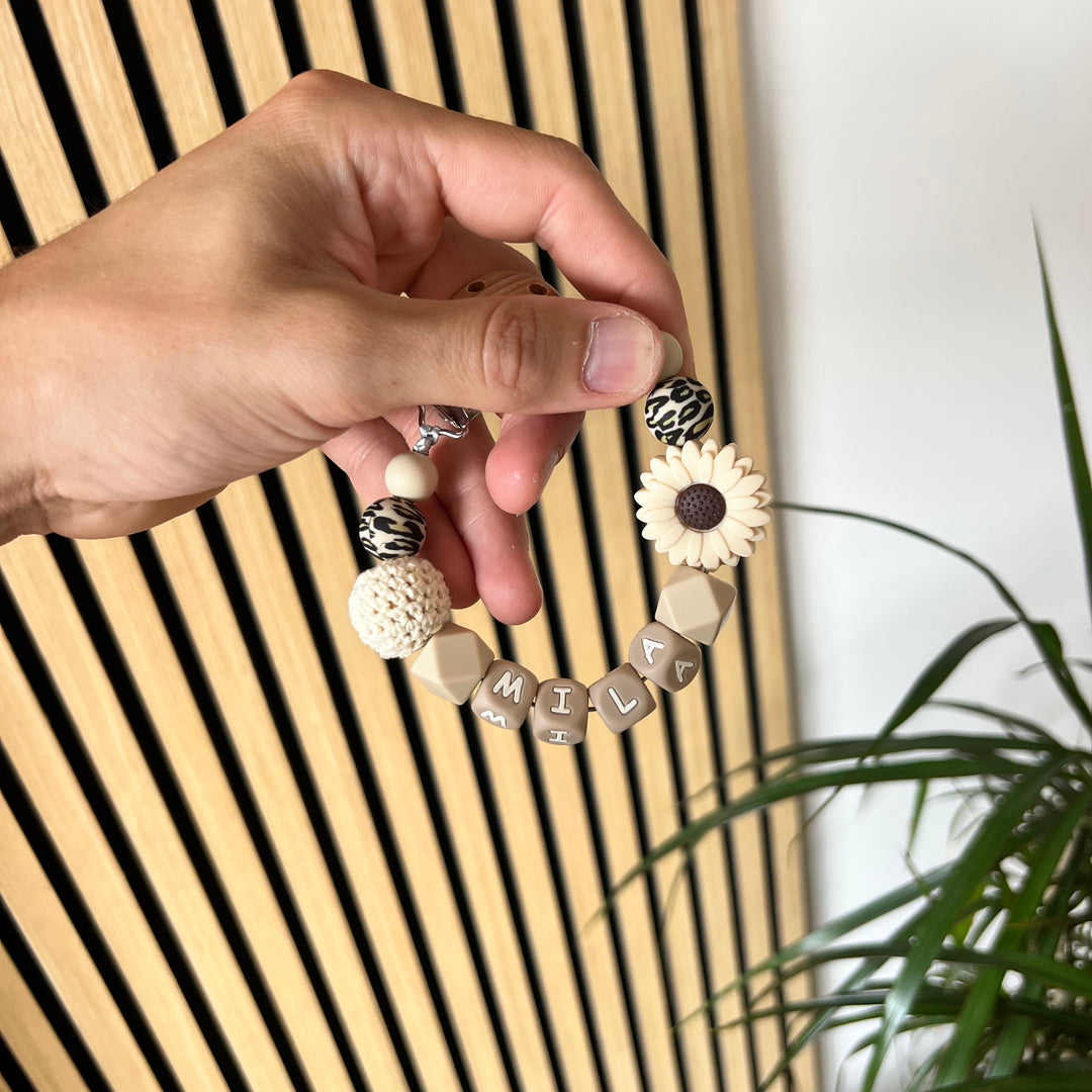 Schnullerkette Sonnenblume mit Namen